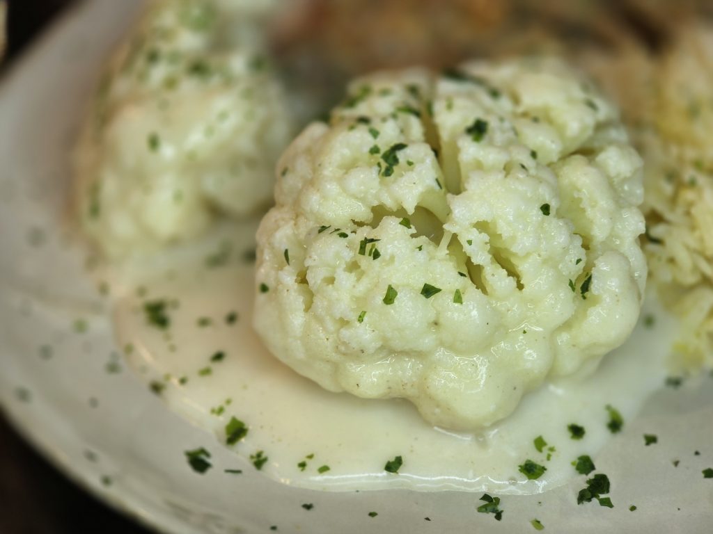 Chou-fleurs an enger wäisser Zooss ass eent Goud Beispill, datt Genoss ganz einfasch kann sen. Datt näist van exotischen Zutaten oder komplizéiert Techniken aafhänkt. Stehs du bei dengem Dëppen an réihers, du probéiers ass datt wahrschienlich genau datt watt dëst Ässen brausch. Keen Kaméidi. Keen Drock. Nëmmen datt ruhigt schaffen , bei deem sech Schratt fir Schraff alles zesaammen fügt. Eent Ässen datt eis do dran erënnert, firwatt mir iwerhaupt kooschen.