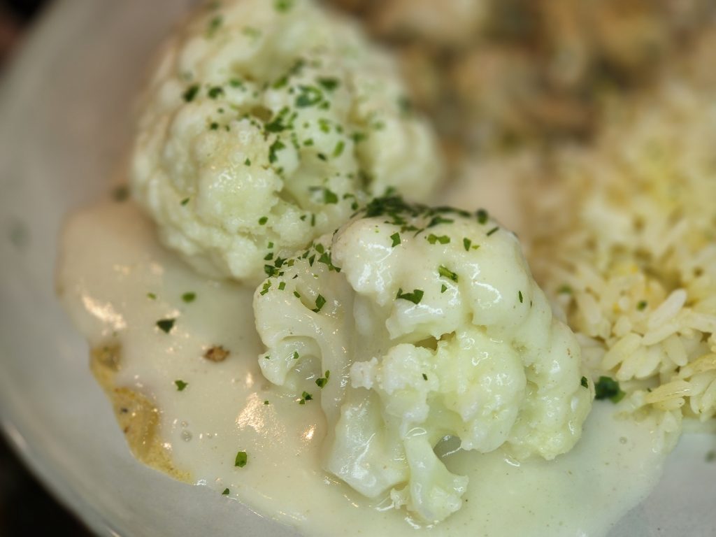D’Mëschung aus Mëlich an Chou-fleurs-Waasser mëcht Zooss mi liit an mi aromatisch. Ech notzen datt watt während dem Kooschen entsteht, een einfaschen Handgrëff, deen vill bewirkt. Et ass eent Ässen datt net van Raffinesse liäft, mee van Opmiäriksamkeet