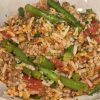 - Wann den Broot fiärdig ass, raus hualen an ongeféier 5 Min. ruhen loossen, dann rischt schnegden an op Telleren verdeelen.