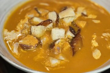 - D’Zopp han ech mat bëssen Schmand an de Croûtons zervéiert.