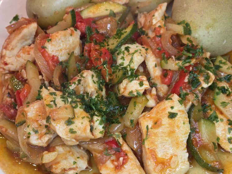 Ech selwer han an mengem Rezept Pouletfilet gehollt, zaart moojer, siier gegaart an wonnerbar geegent, fir de Goût vam Knuawelek, Paprika an den Tomaten opzehualen. Poulet ass wahrscheinlich datt internationalst Fleesch iwerhaupt. Houhner sen well an der Antik domestizéiert jiän, an ass bis hokt eent van deen am meesten konsuméierten Fleeschzorten. Et fonktionéiert äwer o mat anneren Zorten. Schwengsfilet brengt mi Würzigkeet, Pute bleift saaftig an mëll, an fir all déi et jiären vegetarisch oder vegan wëllen, entweckelt Reechertofu oder Seitan een ähnlich herzhaften Effekt.