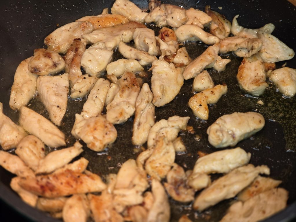 2 Pouletfielt, an dënn Sträifen geschnidden