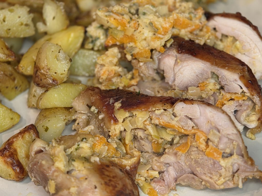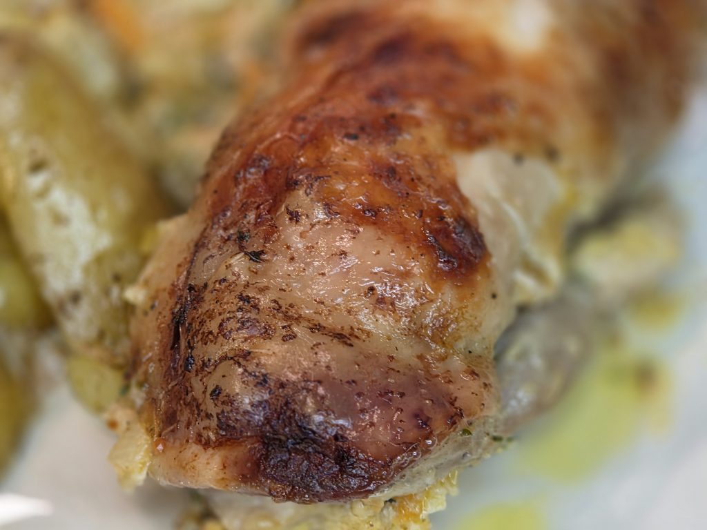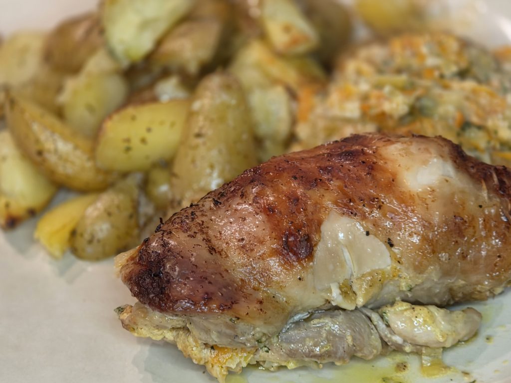 Mein Plang von hokt wor et nëmmen en Klengigkeet ze kooschen, datt wor befir ech an de Buttik gefahren sen. Dono haat ech Muurten, Poretten, ausgebeente Pouletstempelen an Eier. D’Iddi wat ech hokt kooschen hat sech während dem Ankoof entweckelt. Pouletrouladen, genau gesoot Punjeni Batak. Eent traditionellt Ässen vam Balkan, besonnig beléift an Serbien, Bosnien an Kroatien. Et ass eng Roulade aus Pouletfleesch, genausgesoot ausgebeente Pouletstempelen. mat enger Fëllung déi ganz verschidden se kann, mol mat Speck, Kiiss, Gehacktes oder Geméiss.